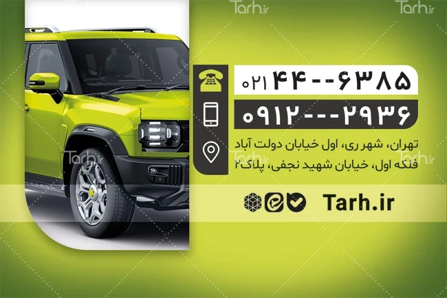 دانلود کارت ویزیت نمایشگاه خودرو با رنگبندی سبز کد فایل 6394807