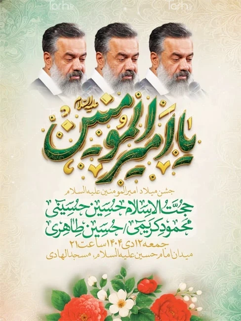 طرح آماده بنر اطلاع رسانی جشن میلاد امام علی با فرمت psd و قابل ویرایش در نرم افزار فتوشاپ به صورت لایه باز توسط تیم طراحان طرح دات آی آر طراحی شده است. در پوستر ولادت حضرت علی از تصاویر و المان های با کیفیت و متناسب با استاندارد چاپ استفاده گردیده است. پوستر ولادت حضرت امیر شامل تایپوگرافی یا امیر المومنین و وکتور گل میباشد که المان های استفاده شده در بنر لایه باز اطلاعیه ولادت حضرت علی قابلیت ویرایش، جابه جایی و تغییر سایز را دارا بوده و شما می توانید متناسب با سلیقه خودتان طرح بنر ولادت حضرت علی را ویرایش نمایید.