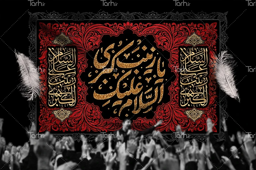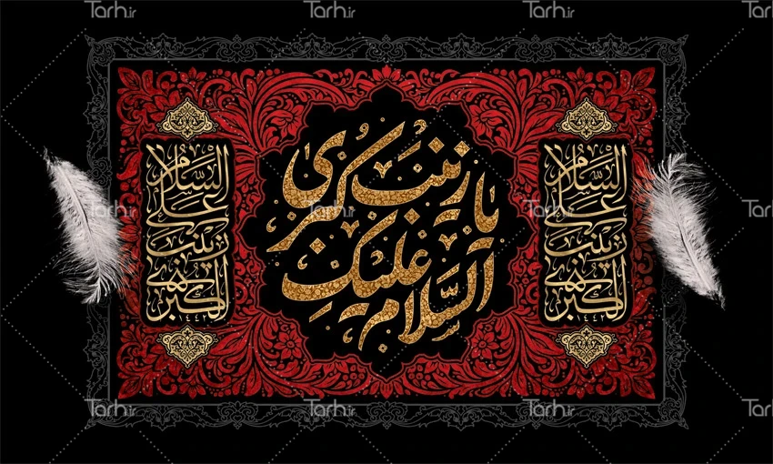 طرح کتیبه وفات حضرت زینب با تایپوگرافی السلام علیک یا زینب کبری کد فایل 6401857