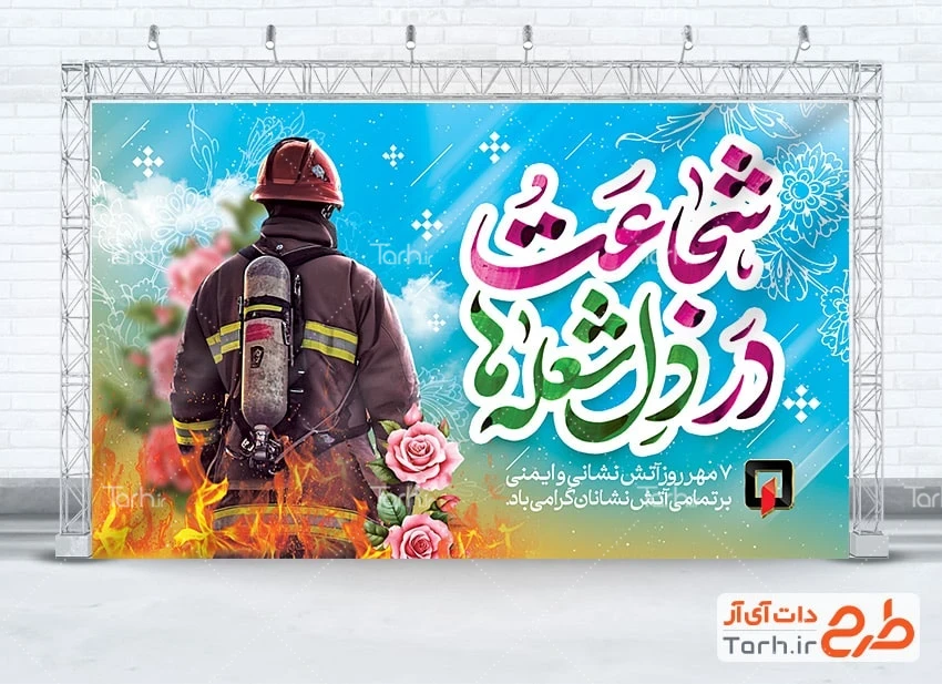 بنر خام روز آتش نشانی فرمت psd و قابل ویرایش در نرم افزار فتوشاپ به صورت لایه باز توسط تیم طراحان طرح دات آی آر طراحی شده است. در نمونه بنر روز آتش نشانی و ایمنی از تصاویر و المان های با کیفیت و متناسب با استاندارد چاپ استفاده گردیده است. طرح پوستر روز آتش نشانی و ایمنی شامل خوشنویسی شجاعت در دل شعله ها، عکس آتش نشان و آرم آتش نشانی می باشد که المان های استفاده شده در طرح لایه باز بنر روز آتش نشانی و ایمنی قابلیت ویرایش، جابه جایی و تغییر سایز را دارا بوده و شما می توانید متناسب با سلیقه خودتان طرح گرامیداشت روز آتش نشانی و ایمنی را ویرایش نمایید.