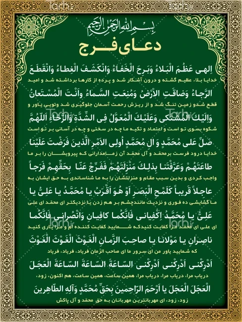 پوستر خام دعای فرج با فرمت psd و قابل ویرایش در نرم افزار فتوشاپ به صورت لایه باز توسط تیم طراحان طرح دات آی آر طراحی شده است. در طرح آماده بنر دعای فرج با کیفیت از تصاویر و المان های با کیفیت و متناسب با استاندارد چاپ استفاده گردیده است. طرح لایه باز دعای فرج شامل متن دعای الهی عظم البلا و کادر اسلیمی می باشد که المان های استفاده شده در پوستر لایه باز دعای فرج قابلیت ویرایش، جابه جایی و تغییر سایز را دارا بوده و شما می توانید متناسب با سلیقه خودتان پوستر خام دعا فرج را ویرایش نمایید.