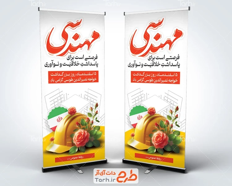 ابعاد قابل چاپ لمپوست و استند روز مهندس و کاربرد آن