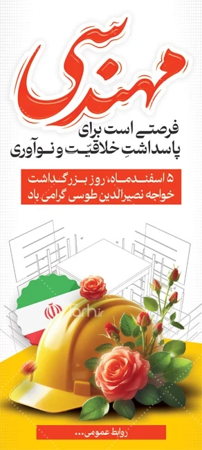 طرح خام استند روز مهندس با عکس کلاه ایمنی و گل کد فایل 6471803