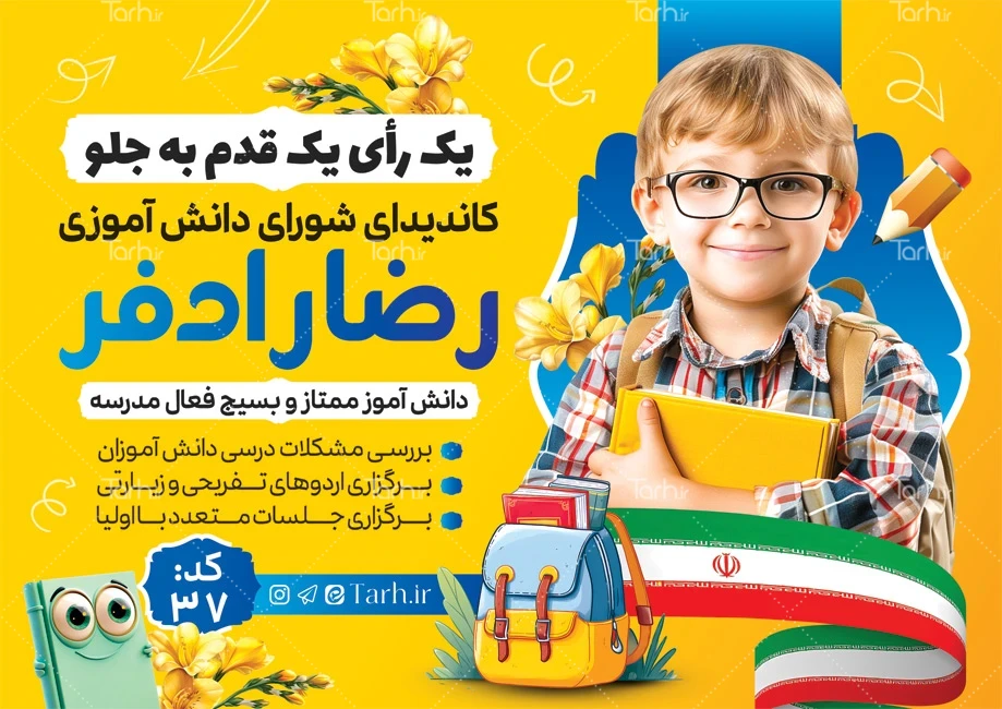 تراکت لایه باز انتخابات شورای دانش آموزی با فرمت psd و قابل ویرایش در نرمافزار فتوشاپ بهصورت لایه باز توسط تیم طراحان طرح دات آی آر طراحی شده است. در نمونه تراکت انتخابات شورای دانش آموزی از تصاویر و المانهای باکیفیت و متناسب با استاندارد چاپ استفادهشده، همچنین نکات مهم در تراکت لایه باز انتخابات دانش آموزی مانند رنگبندی، رعایت حاشیه، فاصلهها، فضای کافی برای درج متن، سایز و نوع فونت مناسب طراحی تراکت و ... رعایت گردیده است. طرح لایه باز تراکت انتخابات شورای مدرسه شامل عکس دانش آموز، وکتور پرچم ایران و وکتور لوازم التحریر میباشد که المانهای استفادهشده در طرح تراکت انتخابات شورای دانش آموزی مدرسه قابلیت ویرایش، جابهجایی و تغییر سایز را دارا بوده و شما میتوانید متناسب باسلیقه خودتان تراکت لایه باز انتخابات شورای دانش آموزی را ویرایش نمایید، همچنین با تغییر تصاویر و متنها میتوانید طرح تراکت انتخابات دانش آموزی را به طرح تراکت کسب و کار مد نظر خود شخصی سازی نمایید.