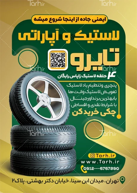 ابعاد طرح تراکت تبلیغاتی لاستیک فروشی در جدول ویژگیهای فایل درجشده و با توجه به لایه باز بودن و کیفیت بالای طرح لاستیک فروشی، قابلیت ویرایش و تبدیل به سایز دلخواه، همچنین چاپ روی متریالهای مختلف مانند بنر، کاغذ، گلاسه و ... را دارا میباشد. برای مثال تراکت خام لاستیک فروشی در ابعاد A4 رزولوشن 300 dpi قابلیت چاپ بنر و لارج فرمت در ابعاد بزرگتر مانند 3 در 4 متر و بدون افت کیفیت را دارا میباشد. تراکت ها به عنوان یک ابزار تبلیغاتی بسیار موثر محسوب می شوند و به دلیل هزینه کم و تأثیر بالا، در بسیاری از کسب و کارها به عنوان روشی برای تبلیغات و رویدادهای مختلف مورد استفاده قرار می گیرند.