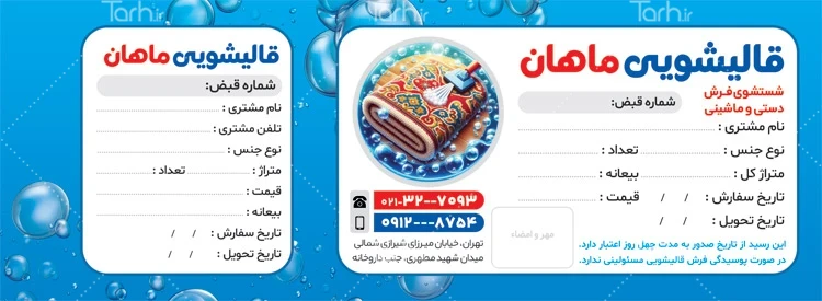 طرح خام قبض قالیشویی با تم آبی کد فایل 6517094
