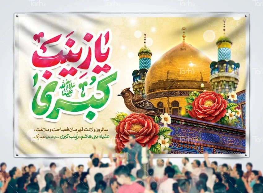طرح بنر پشت سن ولادت حضرت زینب با فرمت psd و قابل ویرایش در نرم افزار فتوشاپ به صورت لایه باز توسط تیم طراحان طرح دات آی آر طراحی شده است. در طرح لایه باز بنر ولادت حضرت زینب از تصاویر و المان های با کیفیت و متناسب با استاندارد چاپ استفاده گردیده است. طرح بنر پشت منبری ولادت حضرت زینب شامل تایپوگرافی یا زینب کبری، عکس حرم حضرت زینب و وکتور گل می باشد که المان های استفاده شده در طرح بنر پشت مداح ولادت حضرت زینب قابلیت ویرایش، جابه جایی و تغییر سایز را دارا بوده و شما می توانید متناسب با سلیقه خودتان طرح دکور میلاد حضرت زینب لایه باز را ویرایش نمایید.