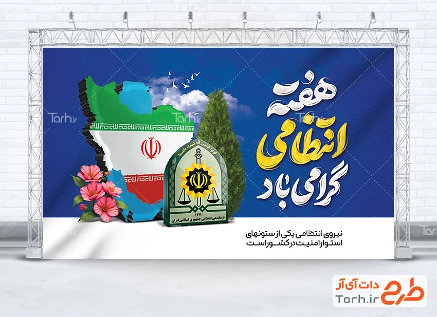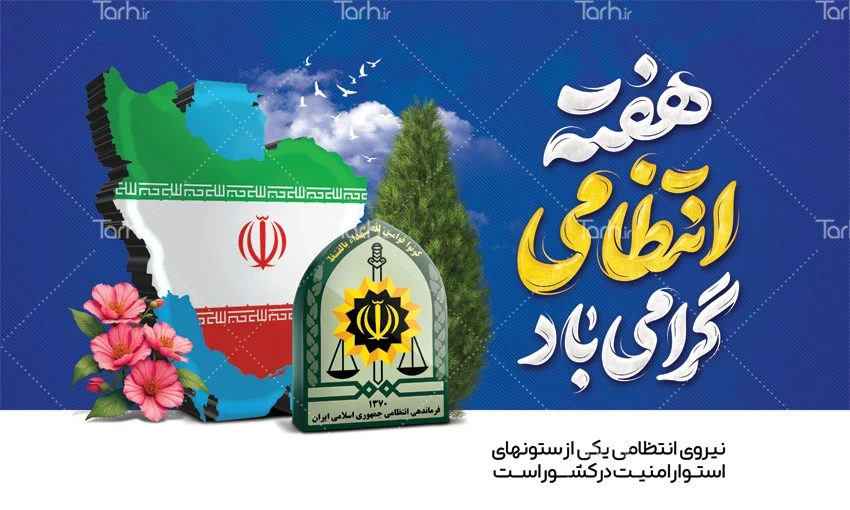 طرح لایه باز بنر هفته نیروی انتظامی با فرمت psd و قابل ویرایش در نرم افزار فتوشاپ به صورت لایه باز توسط تیم طراحان طرح دات آی آر طراحی شده است. در بنر خام روز نیروی انتظامی از تصاویر و المان های با کیفیت و متناسب با استاندارد چاپ استفاده گردیده است. پوستر هفته پلیس شامل خوشنویسی هفته انتظامی گرامی باد، آرم نیروی انتظامی، وکتور نقشه و پرچم ایران می باشد که المان های استفاده شده در طرح لایه باز بنر هفته نیرو انتظامی قابلیت ویرایش، جابه جایی و تغییر سایز را دارا بوده و شما می توانید متناسب با سلیقه خودتان طرح هفته نیروی انتظامی را ویرایش نمایید.