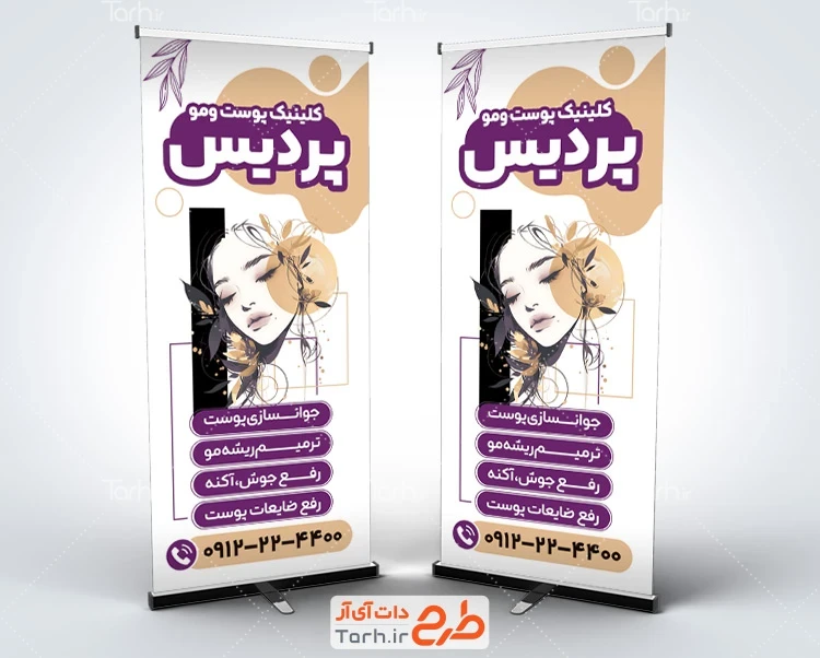 ابعاد قابل چاپ استند دکتر پوست و مو و کاربرد آن