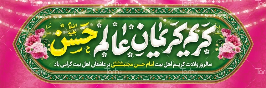 بنر پلاکارد ولادت امام حسن با تایپوگرافی کریم کریمان عالم حسن کد فایل 6572948