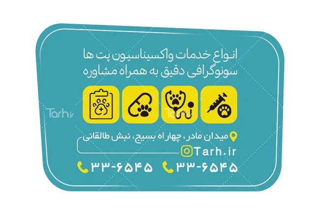 ابعاد طرح لایه باز کارت ویزیت کلینیک دامپزشکی در جدول ویژگیهای فایل درجشده و با توجه به لایه باز بودن و کیفیت بالای طرح دامپزشکی، قابلیت ویرایش و تبدیل به سایز دلخواه مانند کارت ویزیت مربع، دایره، برش خاص، قالب اختصاصی و ... را دارا میباشد. کارت ویزیت خام دامپزشکی قابلیت چاپ افست و چاپ دیجیتال روی انواع جنس کارت ویزیت مانند گلاسه، لمینت، کتان، کرافت، سلفون و پیویسی و ... را دارد. همچنین میتوان از طرح های کارت ویزیت جهت چاپ اتیکت، لیبل، کارت آویز و ... نیز استفاده کرد.
