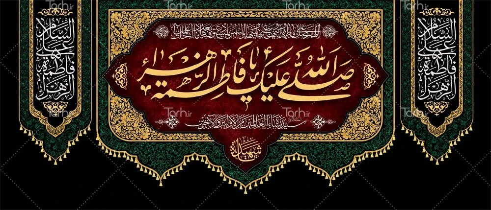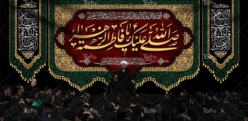 طرح کتیبه پشت منبری شهادت حضرت فاطمه با فرمت psd و قابل ویرایش در نرم افزار فتوشاپ به صورت لایه باز توسط تیم طراحان طرح دات آی آر طراحی شده است. در طرح لایه باز کتیبه شهادت حضرت فاطمه الزهرا از تصاویر و المان های با کیفیت و متناسب با استاندارد چاپ استفاده گردیده است. طرح دکور ایام فاطمیه شامل خوشنویسی السلام علیک یا فاطمه الزهرا و طرح اسلیمی می باشد که المان های استفاده شده در طرح کتیبه پشت منبری فاطمیه قابلیت ویرایش، جابه جایی و تغییر سایز را دارا بوده و شما می توانید متناسب با سلیقه خودتان طرح لایه باز کتیبه فاطمیه را ویرایش نمایید.
