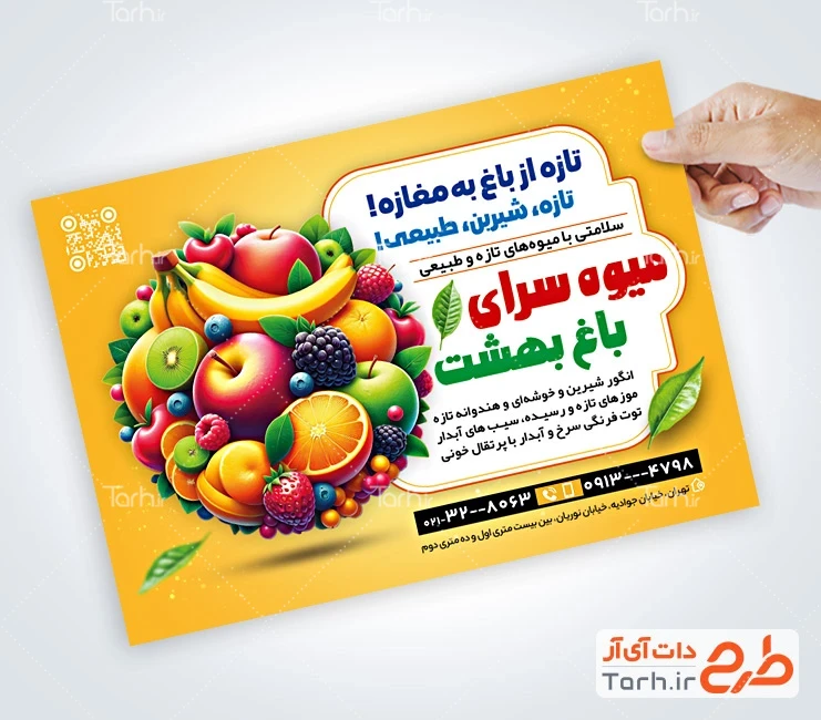 ابعاد طرح تراکت تبلیغاتی میوه فروشی در جدول ویژگیهای فایل درجشده و با توجه به لایه باز بودن و کیفیت بالای طرح میوه سرا، قابلیت ویرایش و تبدیل به سایز دلخواه، همچنین چاپ روی متریالهای مختلف مانند بنر، کاغذ، گلاسه و ... را دارا میباشد. برای مثال تراکت خام میوه فروشی در ابعاد A4 رزولوشن 300 dpi قابلیت چاپ بنر و لارج فرمت در ابعاد بزرگتر مانند 3 در 4 متر و بدون افت کیفیت را دارا میباشد. تراکت ها به عنوان یک ابزار تبلیغاتی بسیار موثر محسوب می شوند و به دلیل هزینه کم و تأثیر بالا، در بسیاری از کسب و کارها به عنوان روشی برای تبلیغات و رویدادهای مختلف مورد استفاده قرار می گیرند.
