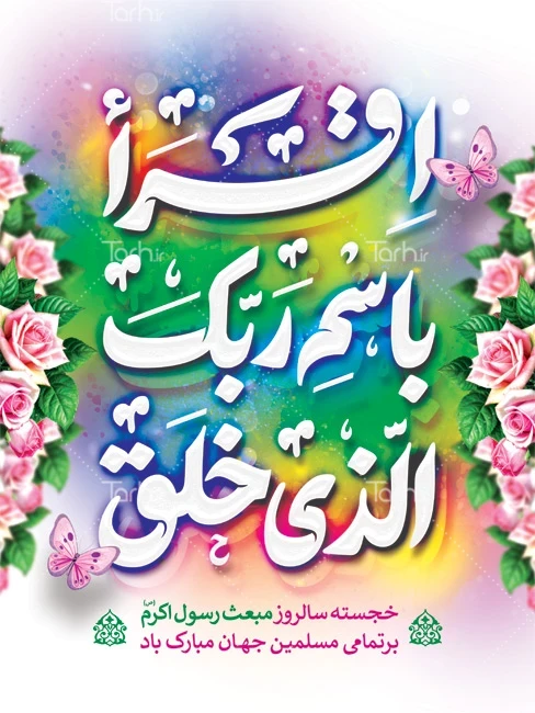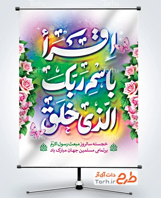 طرح آماده بنر عید مبعث با تایپوگرافی اقرا باسم ربک الذی خلق کد فایل 6709428