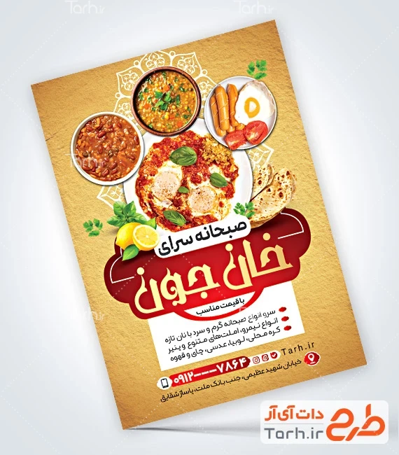 طرح psd تراکت کافه صبحانه با فرمت psd و قابل ویرایش در نرمافزار فتوشاپ بهصورت لایه باز توسط تیم طراحان طرح دات آی آر طراحی شده است. در نمونه تراکت کافه صبحانه از تصاویر و المانهای باکیفیت و متناسب با استاندارد چاپ استفادهشده، همچنین نکات مهم در طرح تراکت کافه صبحانه مانند رنگبندی، رعایت حاشیه، فاصلهها، فضای کافی برای درج متن، سایز و نوع فونت مناسب طراحی تراکت و ... رعایت گردیده است. طرح لایه باز تراکت صبحانه خوری شامل عکس نیمرو و چای میباشد که المانهای استفادهشده در طرح تراکت صبحانه خوری قابلیت ویرایش، جابهجایی و تغییر سایز را دارا بوده و شما میتوانید متناسب باسلیقه خودتان تراکت لایه باز کافه صبحانه و رستوران را ویرایش نمایید، همچنین با تغییر تصاویر و متنها میتوانید تراکت لایه باز رستوران را به طرح تراکت کسب و کار مد نظر خود شخصی سازی نمایید.