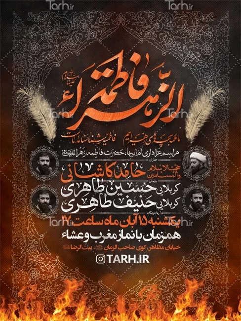 بنر خام اطلاعیه ایام فاطمیه با فرمت psd و قابل ویرایش در نرم افزار فتوشاپ به صورت لایه باز توسط تیم طراحان طرح دات آی آر طراحی شده است. در طرح لایه باز اطلاعیه فاطمیه از تصاویر و المان های با کیفیت و متناسب با استاندارد چاپ استفاده گردیده است. طرح اطلاعیه خام ایام فاطمیه شامل تایپوگرافی فاطمه الزهرا و دارای زمان و مکان مراسم روضه و عزاداری می باشد که المان های استفاده شده در بنر لایه باز شهادت حضرت فاطمه قابلیت ویرایش، جابه جایی و تغییر سایز را دارا بوده و شما می توانید متناسب با سلیقه خودتان طرح اطلاعیه شهادت حضرت فاطمه را ویرایش نمایید.