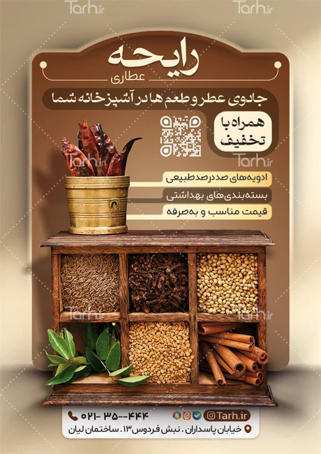 طرح لایه باز تراکت عطاری با عکس ادویه کد فایل 6715804