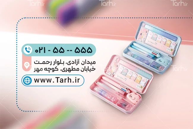 کارت ویزیت تبلیغاتی نوشت افزار با عکس جامدادی کد فایل 6745120