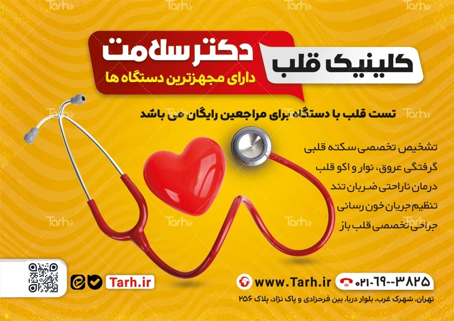 نمونه تراکت آماده دکتر قلب و عروق با تم زرد کد فایل 6790483