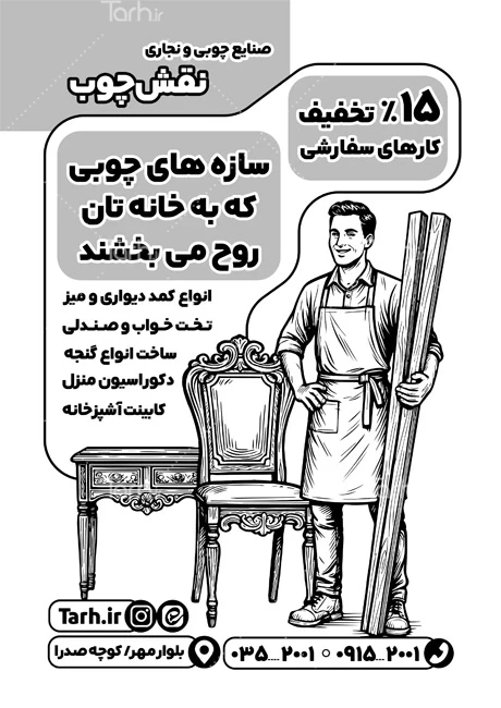 ابعاد قابل چاپ طرح تراکت سیاه سفید نجاری و کاربرد آن