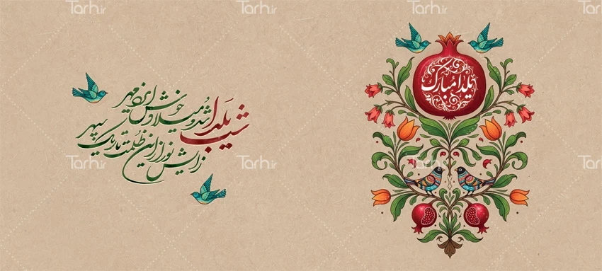طرح ماگ شب یلدا شامل خوشنویسی شعر یلدایی کد فایل 6813249