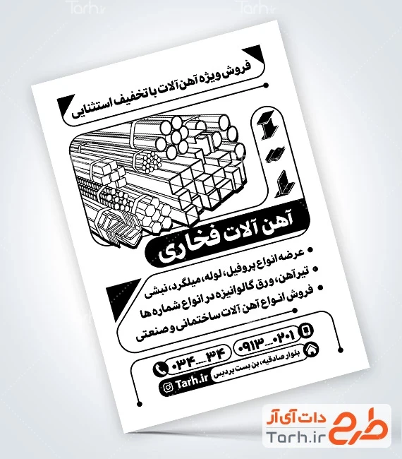 ابعاد قابل چاپ طرح تراکت سیاه سفید آهن آلات و کاربرد آن
