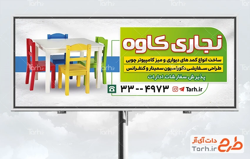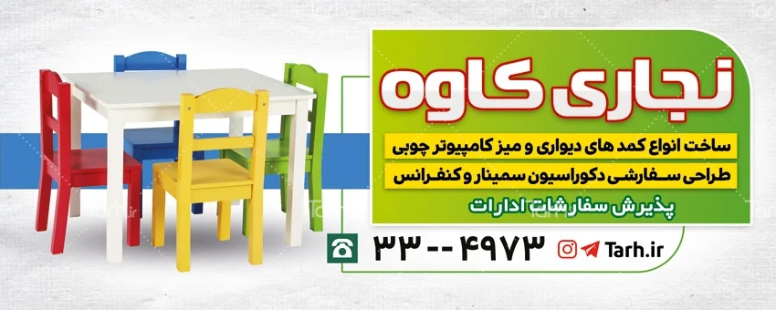 طرح خام بنر صنایع چوبی و نجاری با عکس میز و صندلی کد فایل 6851423