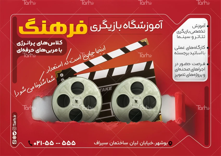 فایل تراکت آموزشگاه بازیگری لایه باز شامل عکس کلاکت کد فایل 6870431