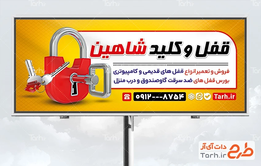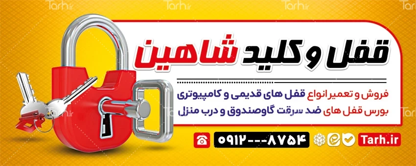طرح تابلو تبلیغاتی قفل و کلید سازی با تم زرد کد فایل 6879034