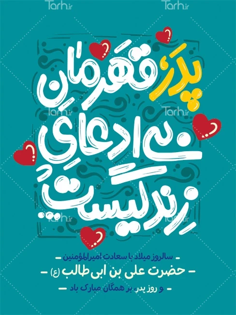 طرح بنر تبریک روز مرد با فرمت psd و قابل ویرایش در نرم افزار فتوشاپ به صورت لایه باز توسط تیم طراحان طرح دات آی آر طراحی شده است. در طرح لایه باز روز پدر از تصاویر و المان های با کیفیت و متناسب با استاندارد چاپ استفاده گردیده است. بنر لایه باز ولادت حضرت علی و روز مرد شامل خوشنویسی پدر قهرمان بی ادعای زندگیست میباشد که المان های استفاده شده در طرح بنر خام روز پدر قابلیت ویرایش، جابه جایی و تغییر سایز را دارا بوده و شما می توانید متناسب با سلیقه خودتان بنر لایه باز روز پدر را ویرایش نمایید.