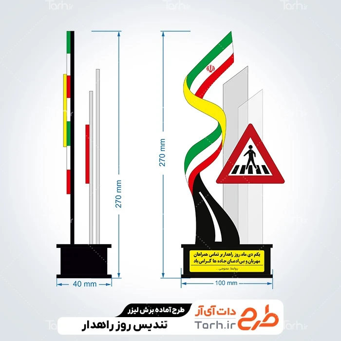 فایل لایه باز لیزر تندیس روز راهدار با نرم افزار Corel Draw به صورت لایه باز و قابل ویرایش توسط تیم طراحان طرح دات آی آر طراحی شده است. در طرح آماده برش لیزری استند روز راهداری نکات مهم طراحی لیزر مانند رعایت ضخامت چوب، ابعاد استاندارد طرح و چیدمان درست برای کمترین پرتی رعایت گردیده است. طرح برش لیزری تندیس روز راهدار، آماده اجرا توسط دستگاه های برش، سی ان سی (CNC)، حکاکی لیزر و حکاکی روی چوب میباشد. شما میتوانید از طرح لیزر روز راهدار جهت تولید انواع لیزر تندیس و استند روز راهدار به عنوان هدیه در مراسمات روز راهداری استفاده کنید.