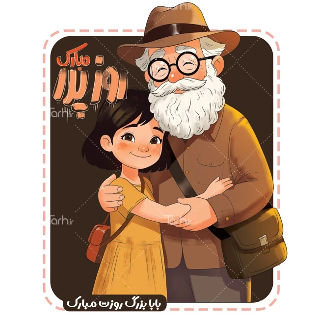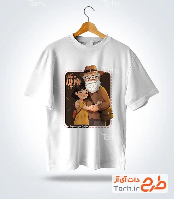 دانلود طرح تی شرت روز مرد دارای تصویرسازی پدربزرگ و دختر کد فایل 6905784