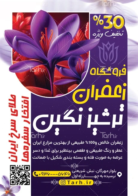 فایل لایه باز تراکت فروشگاه زعفران با فرمت psd و قابل ویرایش در نرمافزار فتوشاپ بهصورت لایه باز توسط تیم طراحان طرح دات آی آر طراحی شده است. در نمونه تراکت زعفران فروشی از تصاویر و المانهای باکیفیت و متناسب با استاندارد چاپ استفادهشده، همچنین نکات مهم در طرح تراکت زعفران فروشی مانند رنگبندی، رعایت حاشیه، فاصلهها، فضای کافی برای درج متن، سایز و نوع فونت مناسب طراحی تراکت و ... رعایت گردیده است. طرح لایه باز تراکت زعفران فروشی شامل عکس گل زعفران میباشد که المانهای استفادهشده در طرح تراکت فروشگاه زعفران قابلیت ویرایش، جابهجایی و تغییر سایز را دارا بوده و شما میتوانید متناسب باسلیقه خودتان تراکت لایه باز زعفران فروشی را ویرایش نمایید، همچنین با تغییر تصاویر و متنها میتوانید طرح تراکت فروش زعفران را به طرح تراکت کسب و کار مد نظر خود شخصی سازی نمایید.