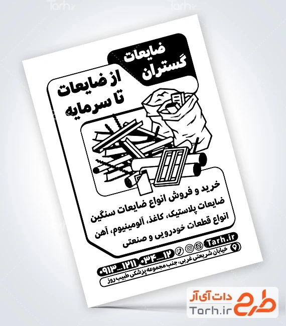طرح تراکت ریسو خرید و فروش ضایعات با قابلیت ویرایش المان ها کد فایل 6913547