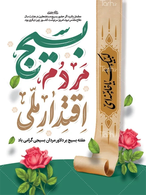 طرح لایه باز بنر هفته بسیج با تایپوگرافی بسیج مردم اقتدار ملی کد فایل 6915078