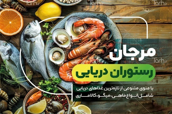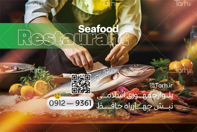طرح آماده کارت ویزیت رستوران دریایی با قابلیت ویرایش المان ها کد فایل 6927408