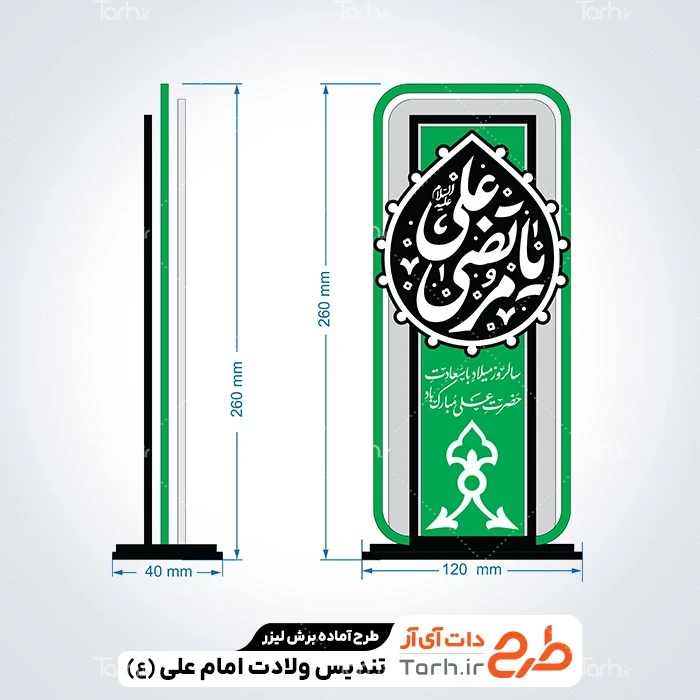 طرح تندیس لیزری ولادت امام علی با نرم افزار Corel Draw به صورت لایه باز و قابل ویرایش توسط تیم طراحان طرح دات آی آر طراحی شده است. در طرح تندیس ولادت حضرت علی نکات مهم طراحی لیزر مانند رعایت ضخامت چوب، ابعاد استاندارد طرح و چیدمان درست برای کمترین پرتی رعایت گردیده است. طرح برش لیزری تندیس روز پدر و میلاد امام علی، آماده اجرا توسط دستگاه های برش، سی ان سی (CNC)، حکاکی لیزر و حکاکی روی چوب میباشد. شما میتوانید از طرح لیزر تندیس پدر و طرح لیزر تندیس مذهبی جهت تولید انواع تندیس و استند روز مرد به عنوان هدیه در مراسمات روز پدر و ولادت حضرت علی استفاده کنید.
