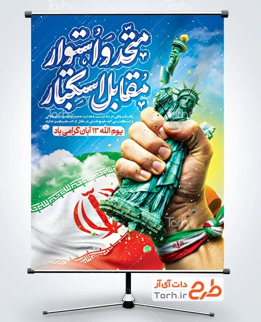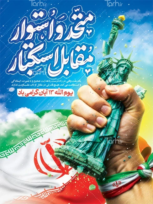 طرح بنر روز دانش آموز با فرمت psd و قابل ویرایش در نرم افزار فتوشاپ به صورت لایه باز توسط تیم طراحان طرح دات آی آر طراحی شده است. در طرح بنر 13 آبان از تصاویر و المان های با کیفیت و متناسب با استاندارد چاپ استفاده گردیده است. طرح بنر 13 آبان روز دانش آموز شامل تایپوگرافی متحد و استوار مقابل استکبار و عکس مجسمه آزادی می باشد که المان های استفاده شده در طرح لایه باز بنر روز دانش آموز قابلیت ویرایش، جابه جایی و تغییر سایز را دارا بوده و شما می توانید متناسب با سلیقه خودتان طرح 13 آبان را ویرایش نمایید.