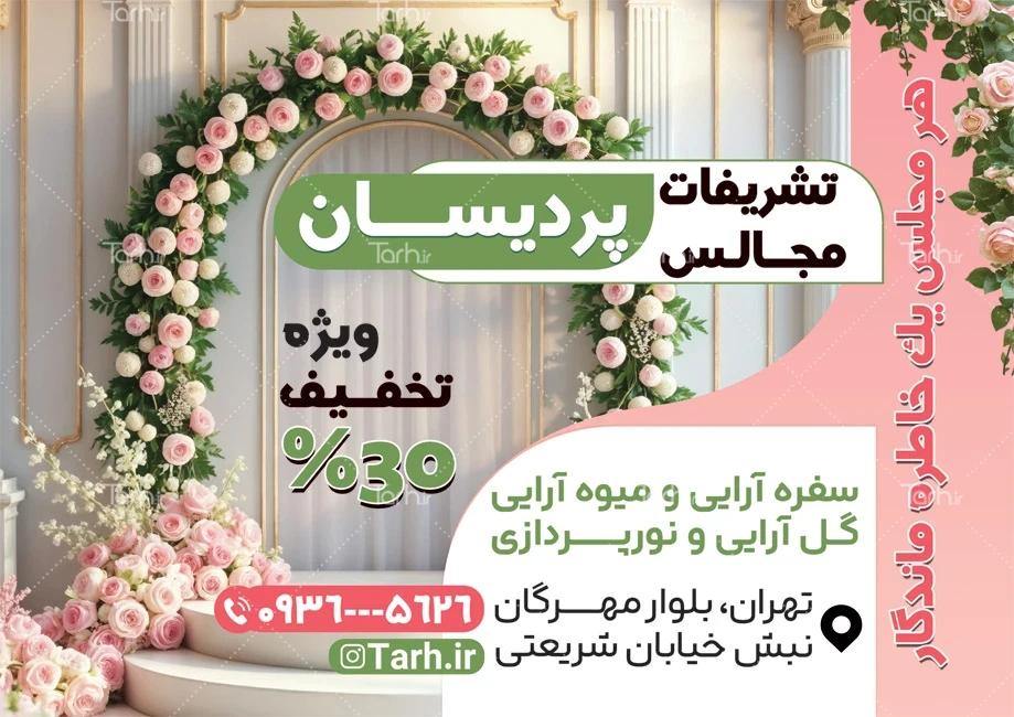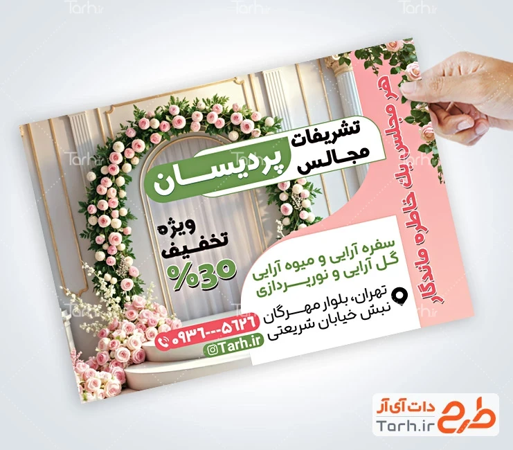 ابعاد قابل چاپ طرح لایه باز تراکت تشریفات مجالس و کاربرد آن