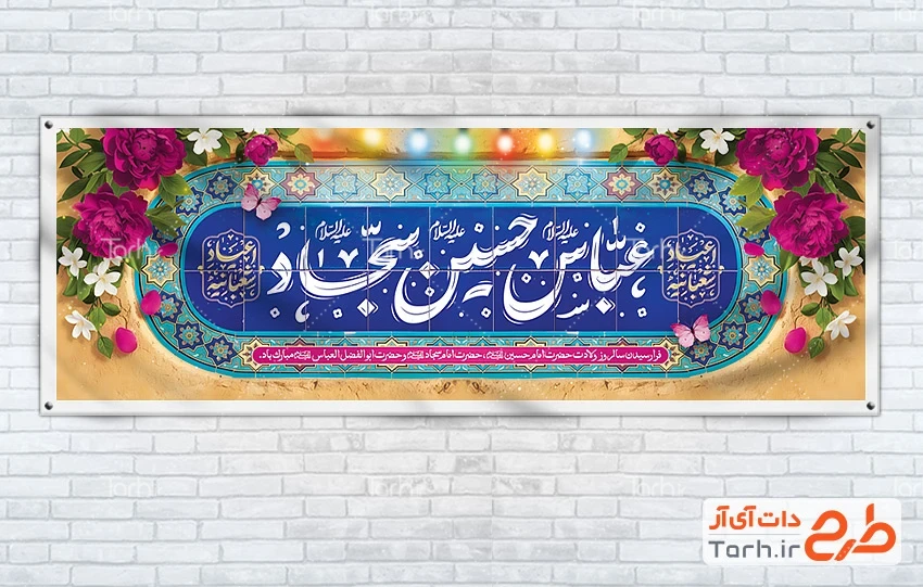 طرح لایه باز پلاکارد اعیاد شعبانیه با خوشنویسی عباس حسین سجاد کد فایل 7018523