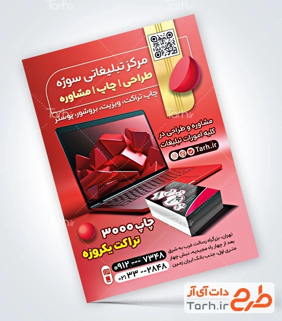 نمونه تراکت کانون تبلیغات با فرمت psd و قابل ویرایش در نرمافزار فتوشاپ بهصورت لایه باز توسط تیم طراحان طرح دات آی آر طراحی شده است. در نمونه تراکت شرکت تبلیغاتی از تصاویر و المانهای باکیفیت و متناسب با استاندارد چاپ استفادهشده، همچنین نکات مهم در طرح تراکت کانون تبلیغات مانند رنگبندی، رعایت حاشیه، فاصلهها، فضای کافی برای درج متن، سایز و نوع فونت مناسب طراحی تراکت و ... رعایت گردیده است. طرح لایه باز تراکت کانون آگهی و تبلیغات شامل عکس لپ تاپ میباشد که المانهای استفادهشده در طرح تراکت کانون تبلیغات قابلیت ویرایش، جابهجایی و تغییر سایز را دارا بوده و شما میتوانید متناسب باسلیقه خودتان تراکت لایه باز شرکت تبلیغاتی را ویرایش نمایید، همچنین با تغییر تصاویر و متنها میتوانید طرح تراکت کانون آگهی را به طرح تراکت کسب و کار مد نظر خود شخصی سازی نمایید.