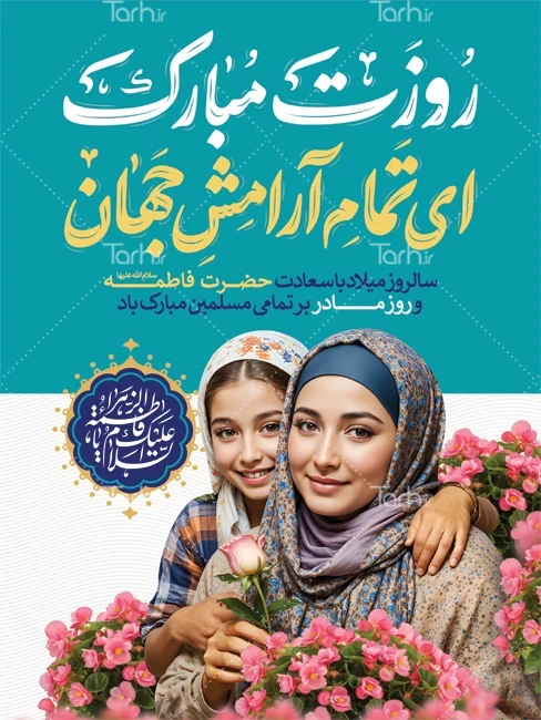 طرح پوستر روز مادر با فرمت psd و قابل ویرایش در نرم افزار فتوشاپ به صورت لایه باز توسط تیم طراحان طرح دات آی آر طراحی شده است. در طرح لایه باز روز مادر از تصاویر و المان های با کیفیت و متناسب با استاندارد چاپ استفاده گردیده است. بنر لایه باز ولادت حضرت فاطمه و روز زن شامل تایپوگرافی روزت مبارک ای تمام آرامش جهان، عکس مادر و دختر و وکتور گل میباشد که المان های استفاده شده در طرح بنر خام روز مادر قابلیت ویرایش، جابه جایی و تغییر سایز را دارا بوده و شما می توانید متناسب با سلیقه خودتان طرح روز مادر را ویرایش نمایید.