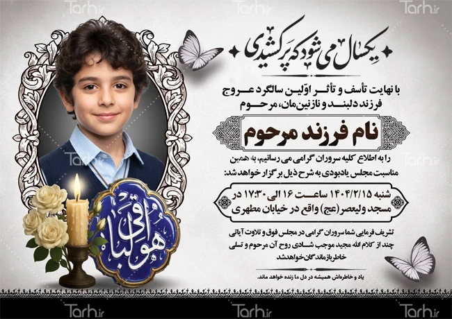 فایل لایه باز آگهی ترحیم سالگرد کودک با قابلیت ویرایش المان ها کد فایل 7046185