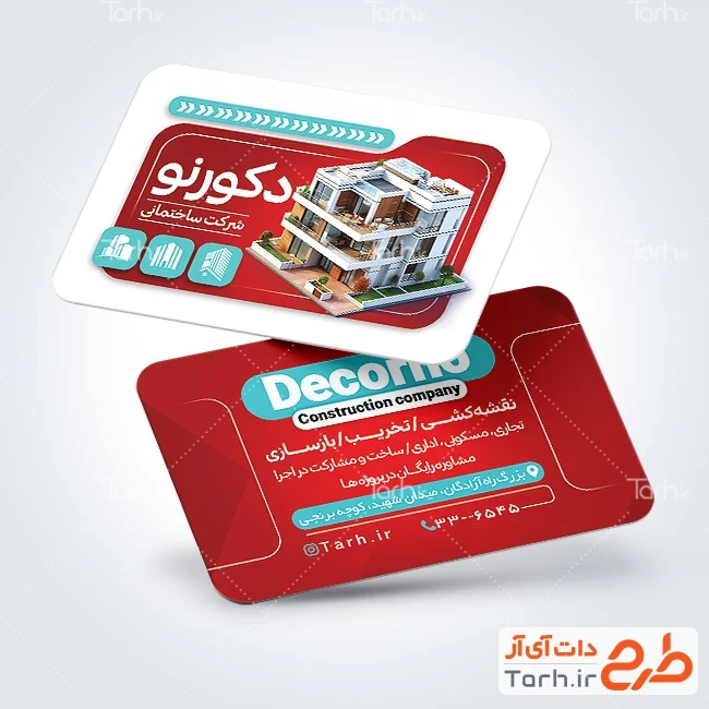 طرح آماده کارت ویزیت شرکت ساختمانی با تم قرمز سفید کد فایل 7051482