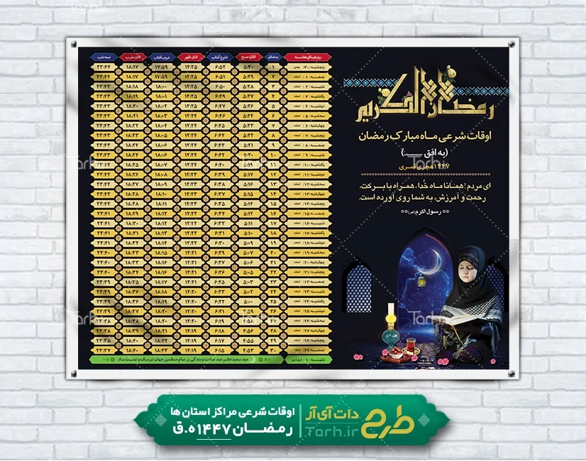 ابعاد قابل چاپ طرح اوقات شرعی ماه رمضان و کاربرد آن