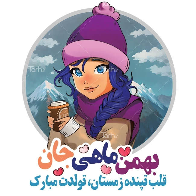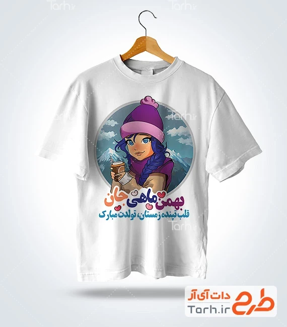 طرح لایه باز تی شرت متولدین بهمن با تصویرسازی دختر کد فایل 7091536
