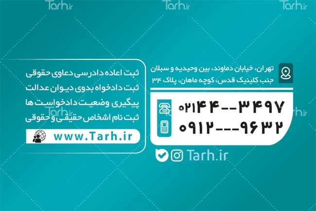 تمامی حقوق برای Tarh.ir محفوظ است. خریدار محترم شما فقط اجازه چاپ طرح فوق را دارید. هرگونه انتشار، بازنشر، فروش و یا هدیه فایل به دیگران غیرقانونی و غیرشرعی بوده و بصورت قانونی پیگیری می گردد. قوانین سایت
