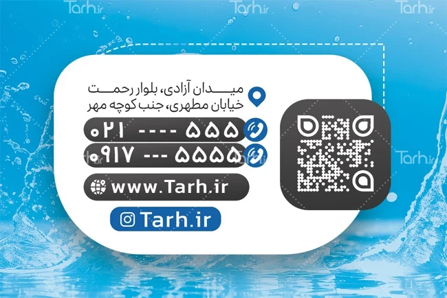 کارت ویزیت تبلیغاتی دستگاه تصفیه آب با فرمت psd و قابل ویرایش در نرمافزار فتوشاپ بهصورت لایه باز و پشت و رو (دو رو) توسط تیم طراحان طرح دات آی آر طراحی شده است. طرح کارت ویزیت دستگاه تصفیه آب از تصاویر و المانهای باکیفیت و متناسب با استاندارد چاپ استفادهشده، همچنین نکات مهم در طرح کارت ویزیت مانند رنگبندی، رعایت حاشیه، فاصلهها، فضای کافی برای درج متن، سایز و نوع فونت مناسب طراحی کارت ویزیت و ... رعایت گردیده است. نمونه کارت ویزیت تصفیه آب شامل عکس دستگاه تصفیه آب میباشد که المانهای استفادهشده در طرح کارت ویزیت تصفیه آب خانگی و صنعتی قابلیت ویرایش، جابهجایی و تغییر سایز را دارا بوده و شما میتوانید متناسب باسلیقه خودتان کارت ویزیت لایه باز دستگاه تصفیه آب را ویرایش نمایید، همچنین با تغییر تصاویر و متنها میتوانید طرح کارت ویزیت فروش و نصب تصفیه آب خانگی را به طرح کارت ویزیت کسب و کار مد نظر خود شخصی سازی نمایید.