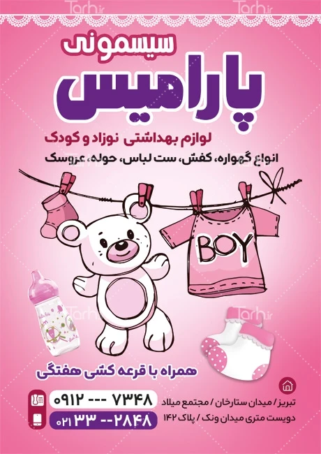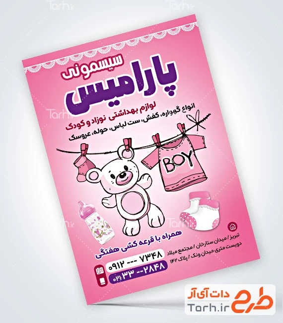 طرح لایه باز پوستر سیسمونی با فرمت psd و قابل ویرایش در نرمافزار فتوشاپ بهصورت لایه باز توسط تیم طراحان طرح دات آی آر طراحی شده است. در نمونه تراکت سیسمونی از تصاویر و المانهای باکیفیت و متناسب با استاندارد چاپ استفادهشده، همچنین نکات مهم در طرح تراکت تبلیغاتی سیسمونی نوزاد مانند رنگبندی، رعایت حاشیه، فاصلهها، فضای کافی برای درج متن، سایز و نوع فونت مناسب طراحی تراکت و ... رعایت گردیده است. طرح لایه باز تراکت آماده سیسمونی شامل وکتور عروسک و لباس میباشد که المانهای استفادهشده در طرح تراکت فروشگاه سیسمونی نوزاد قابلیت ویرایش، جابهجایی و تغییر سایز را دارا بوده و شما میتوانید متناسب باسلیقه خودتان تراکت لایه باز سیسمونی را ویرایش نمایید، همچنین با تغییر تصاویر و متنها میتوانید طرح تراکت لوازم کودک را به طرح تراکت کسب و کار مد نظر خود شخصی سازی نمایید.
