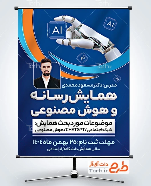 ابعاد قابل چاپ طرح لایه باز بنر همایش هوش مصنوعی و کاربرد آن